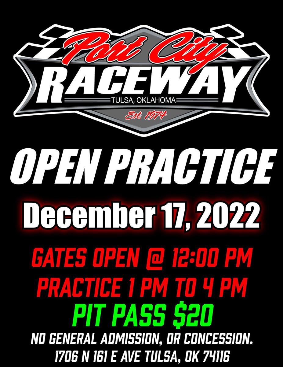 Hoss, Tulsa, OK. (December 12, 2022) – Open practice this Saturday December 17th. Pit window will open at 12 pm with practice running from 1:00 to 4:00. Pit passes will be $20.00. We will keep the general admission gate, and concession stand closed. For more info please text or call 918-899-9605.