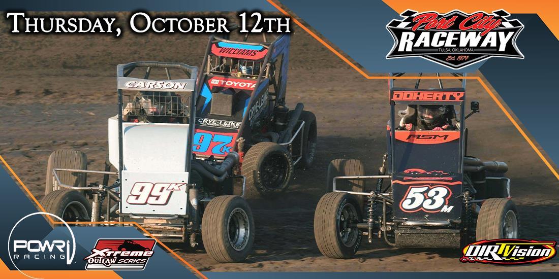 Classes Scheduled to compete at Port City Raceway on Thursday, October 12th is set to include the POWRi National and West Midget Leagues running in conjunction with the Xtreme Outlaw Midget Series, as well as the POWRi Outlaw Non-Wing Micro League presented by Engler Machine and Tool.