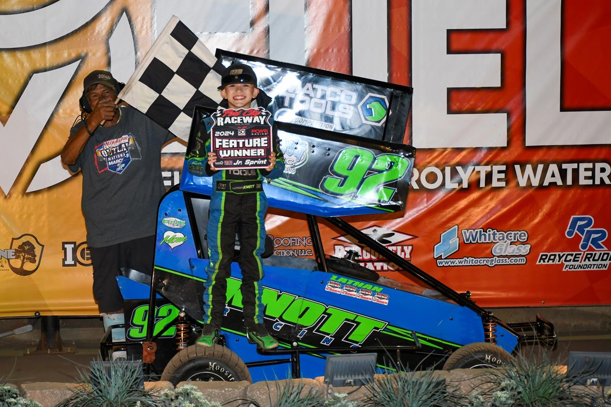 Junior Sprints: Treeline Services / Nicole Potter The Ross Team A Feature (20 Laps): 1. 92-Lathan Knott[1]; 2. 11S-Sawyer McBride[5]; 3. 2-Luke Booher[6]; 4. 22-Ryker Jones[4]; 5. 17C-Caleb Johannesen[3]; 6. 56L-Giovanni Lucito[8]; 7. 21-Brantley Lewis[11]; 8. 10E-Eli Potter[9]; 9. 2M-Lee Moses[7]; 10. 52-Carson Brazeal[13]; 11. 98-Mason McBride[12]; 12. 29-Jesse Bell[10]; 13. (DNS) 65-Bryton Buoy.