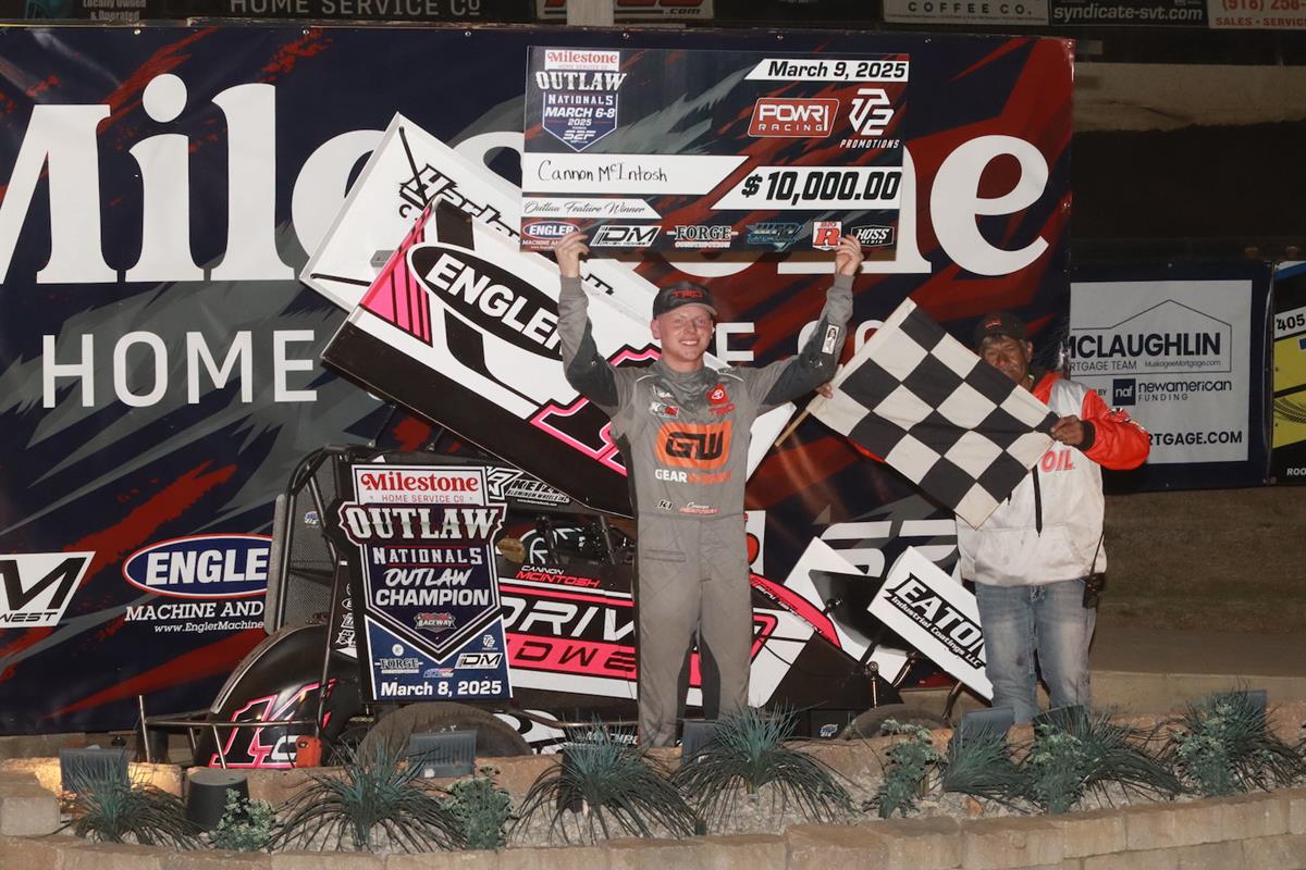 Outlaw Wing: A Feature 1 (50 Laps): 1. 14C-Cannon McIntosh[3]; 2. 89-KJ Snow[1]; 3. 1V-Johnny Boland[4]; 4. 11-Chris Cochran[6]; 5. 95B-James Roselli[16]; 6. 48K-Jeffrey Newell[21]; 7. 51B-Joe B Miller[15]; 8. 25S-Justis Sokol[17]; 9. 22K-Kole Kirkman[9]; 10. 24S-Colby Sokol[13]; 11. 87-Mack Leopard[7]; 12. 81-Frank Flud[22]; 13. 2F-Jadyn Friesen[11]; 14. 32T-Scott Sawyer[14]; 15. 39-Rusty Disinger[10]; 16. 12T-Kale Drake[8]; 17. 2J-Keegan Osantowski[24]; 18. 23-Alec Quiggle[19]; 19. 93-Matt Carr[12]; 20. 3X-Cole Roberts[23]; 21. 3-Cole Schroeder[18]; 22. 61-Cole Tinsley[25]; 23. 21S-Steven Snyder Jr[2]; 24. 20Q-Brecken Reese[5]; 25. 05-Kris Carroll[20].