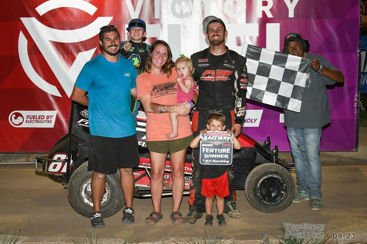Witnessing a robust entry list of one-hundred thirty-two competitors challenging throughout the five racing divisions on Saturday, August 23, Port City Raceway feature winners would include Bryton Buoy in Jr Sprint, Kris Carroll in A-Class, Hunter Adams in Restrictor, Lathe Griggs in Sportsman, and Frank Flud in Non-Wing divisions.