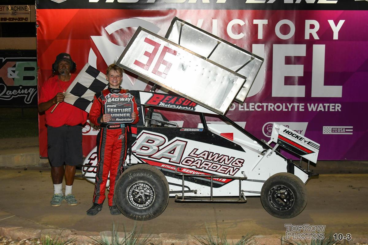 BR3 Motorsports B Feature (12 Laps): 1. 52-Carson Brazeal[1]; 2. 15-Braylon Morris[2]; 3. 23R-Rylan Short[4]; 4. 36-Beau Beason[6]; 5. 62B-Braelyn Wentz[7]; 6. 17-Thatcher Parker[9]; 7. 17Z-Carter Keith[3]; 8. 2T-Wyatt Tyre[8]; 9. 45X-Gunner Hudson[12]; 10. 4-Gus Hess[10]; 11. K74-Makenna Kelley[13]; 12. 17G-Grayson Logan[11]; 13. (DNS) 9-Weston Kesner