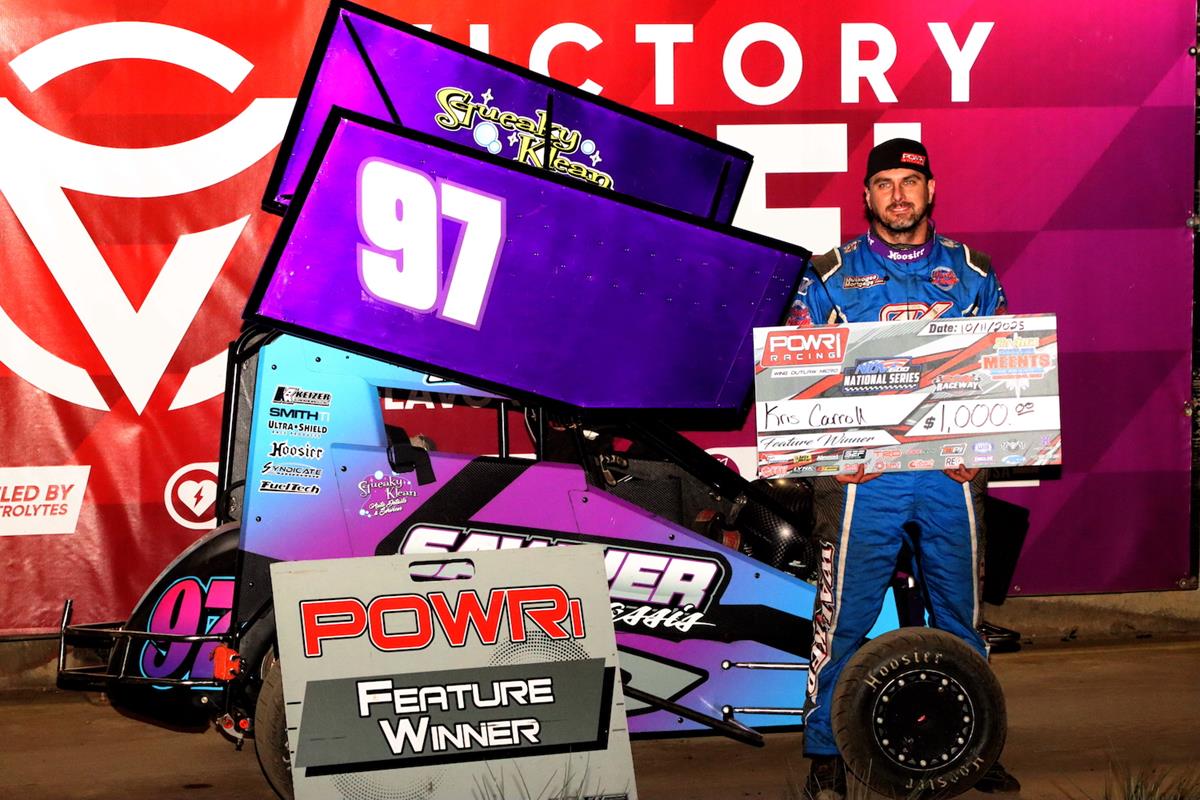 Maintaining the electrifying action with a solid entry list of one-hundred eighty-three competitors challenging throughout the five racing divisions on Saturday, October 11, Port City Raceway Charlene Meents Memorial Championship Night feature winners would be Brandon Carr in the headlining POWRi National & West Midget League feature as well as Jadyn Friesen in the NOW600 A-Class, Nicholas Harris with the NOW600 Restrictors, Brock Berreth in the NOW600 Non-Wing, and Kris Carroll in the POWRi Outlaw Wing division.