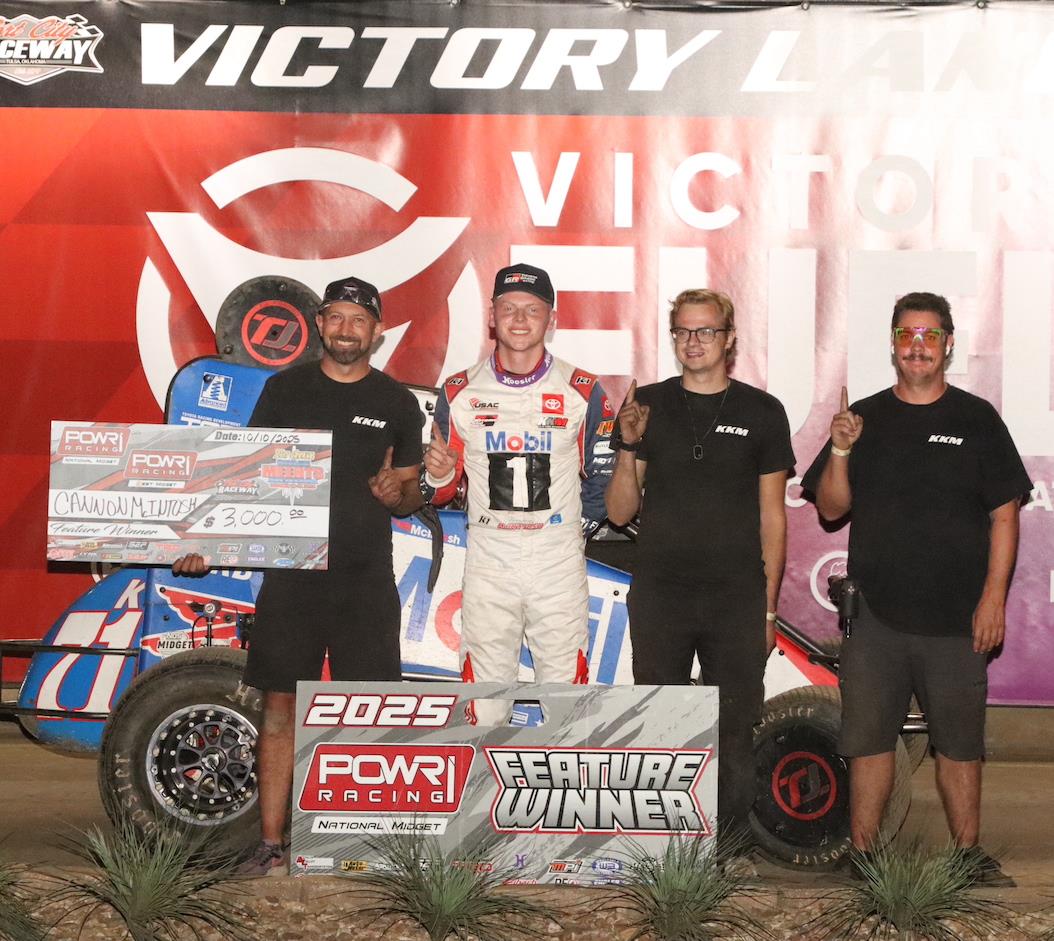 Tulsa, OK. (10/12/25) Electrifying eager entrants in a triple night of weekend racing action, Port City Raceway would welcome the recognizable thrills and excitement of the POWRi National & West Midget Leagues end-of-season events on October 9-11, featuring the annual Donnie Ray Crawford Sooner State 55 as well as the Charlene Meents Memorial presented by Driven2SaveLives.